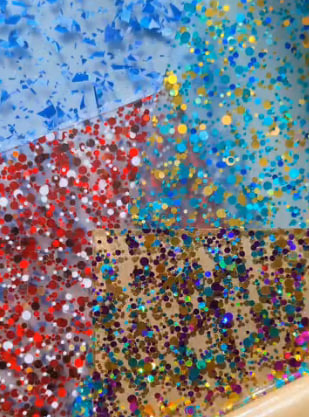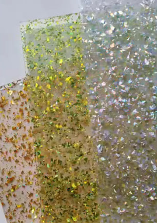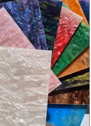 Trabajo materiales metacrilato especiales como escarchados. purpurina, colores solidos, brillantes, transparentes, hasta con luz propia en la oscuridad.